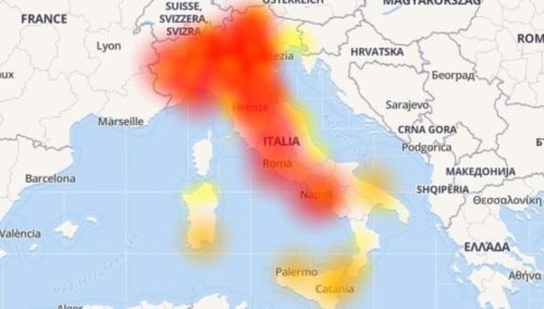 La situazione è confermata dal popolare servizio Down Detector con il rosso che indica le zone con più segnalazioni ricevute sin dalle ore 13.