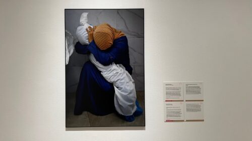 In mostra anche la celebre foto di Adem Altan dell’agenzia France-Presse, che fece il giro del mondo dal titolo Il dolore di un padre, che ritrae un padre mentre stringe la mano della figlia rimasta sepolta sotto le macerie della casa della nonna a seguito del terremoto di magnitudo 7,8 che colpì Siria e Turchia la mattina del 6 febbraio 2023, uccidendo più di 55.000 persone e sfollandone 3,3 milioni, di cui sembriamo aver perso memoria. Lo scatto fotografico congela l’stante e ci obbliga a fermarci per osservare e riflettere. Nell’immagine avviene così una vera narrazione storica e sociale che racconta e denuncia più di tante parole.