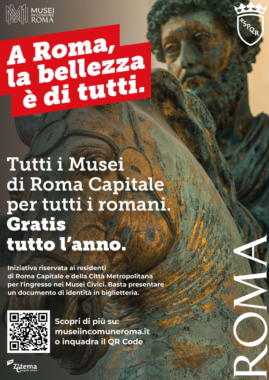 La bellezza come bene comune, accessibile, condiviso e quotidiano. E’ questo il messaggio al centro della nuova campagna di comunicazione “A Roma, la bellezza e’ di tutti”, promossa dall’Amministrazione capitolina, per valorizzare l’iniziativa che rende gratuito tutto l’anno l’accesso ai musei civici per i residenti della Capitale e della Citta’ Metropolitana. La campagna punta a rafforzare la consapevolezza di poter vivere il patrimonio museale della propria citta’ come parte integrante della vita quotidiana: un invito esplicito a riappropriarsi dei luoghi della cultura, nel vissuto quotidiano. Il visual della campagna – dominato dall’immagine iconica della statua simbolo della Capitale, il Marco Aurelio, e dal claim ‘A Roma, la bellezza e’ di tutti’ – costruisce – si legge in una nota del Campidoglio – un “linguaggio diretto e contemporaneo, capace di parlare a un pubblico ampio, trasversale per eta’ e cultura: una campagna che si inserisce nel quadro delle politiche culturali degli ultimi anni che scommettono sempre di piu’ sulla partecipazione dei cittadini alla vita culturale della citta’”.