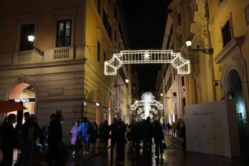 Luminarie Bulgari in via Condotti nel 2021 foto dal profilo Facebook dell'assessore Onorato