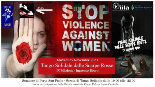 Un tango per combattere la violenza contro le donne. Ritorna anche quest’anno a Roma “Un tango solidale dalle Scarpe Rosse”, ideato e organizzato da Fatima Scialdone dell’associazione culturale Tango Eventi insieme ad Atac, e con il patrocinio dell’ambasciata Argentina, dell’ Istituto italo-latinoamericano.