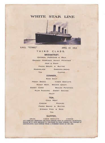 A questi si affiancano menu che ci raccontano le ultime ore del Titanic, le grandi imprese di Amelia Earhart e Charles Lindbergh, Umberto Nobile e Francesco De Pinedo. Dal primo pranzo di Hitler e Mussolini a quelli legati alle celebrazioni per il matrimonio di William & Kate, passando per le incoronazioni di Elisabetta II e di Nicola II, l’ultimo Zar.