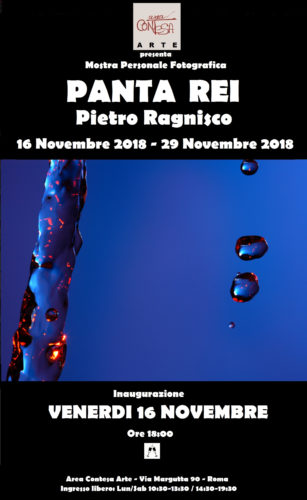 Sempre alle 18, presentazione di ‘Panta Rei’, mostra personale del fotografo Pietro Ragnisco, composta da 14 opere. Presentazione sempre a cura di Teresa M. Zurlo e commento critico del maestro Mario Salvo e di Alfio Borghese.