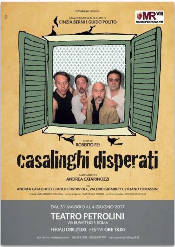 In scena dal 31 maggio al 4 giugno, al teatro Paolini di Roma, ‘Casalinghi disperati‘ vede in scena Andrea Catarinozzi, che ne ha curato anche l’adattamento, Paolo Cordiviola, Valerio Giombetti, Stefano Tomassini.