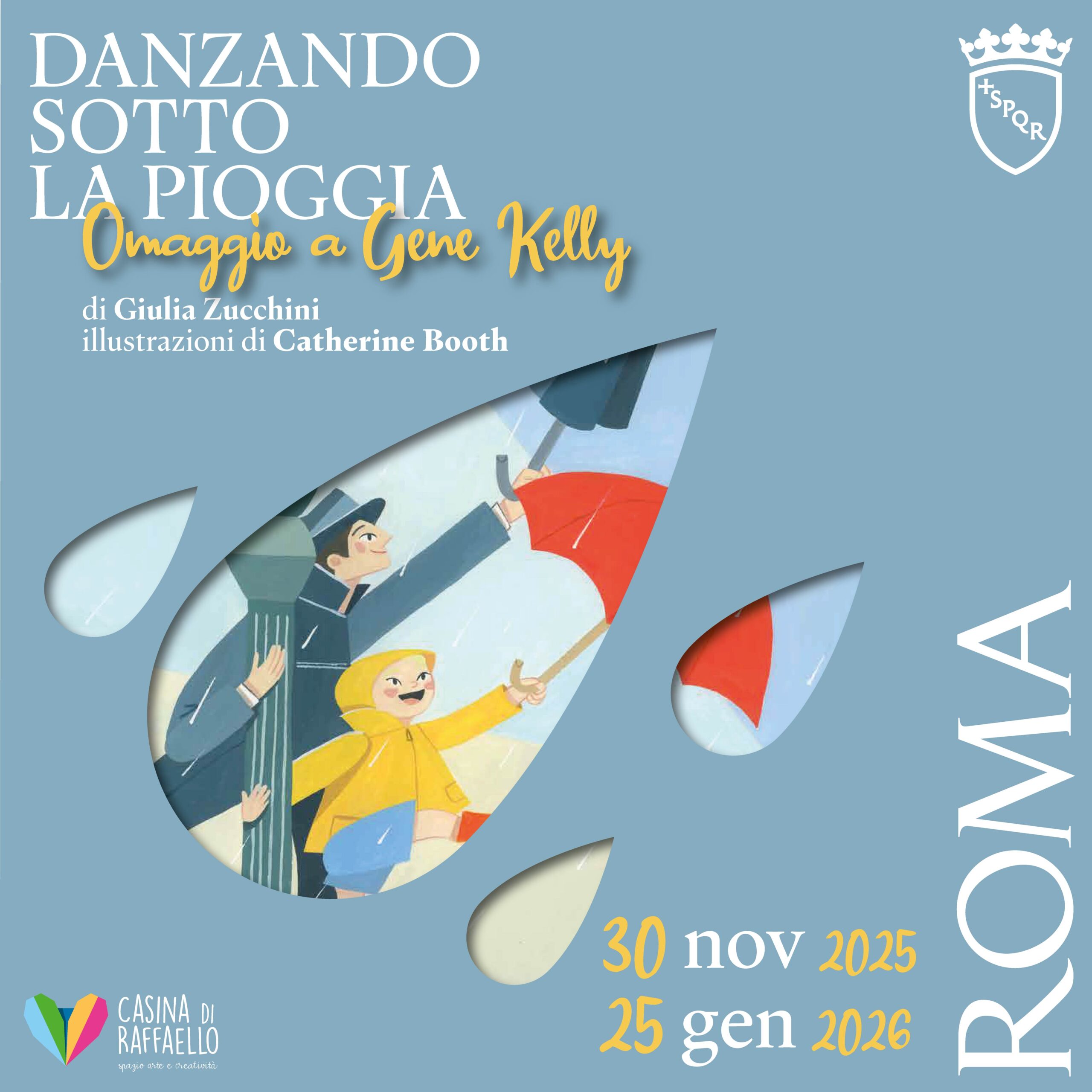 Casina di Raffaello, lo spazio arte e creatività di Roma Capitale, in collaborazione con Edizioni Curci, è lieta di ospitare, dal 29 novembre 2025 al 25 gennaio 2026, la mostra “Danzando sotto la pioggia” – Omaggio a Gene Kelly, dedicata alla figura del grande danzatore, coreografo, attore, cantante, regista statunitense, che ha cambiato la storia della danza nel cinema, il modo di fare film musicali e di danzare davanti alla telecamera, intrattenendo il pubblico con ironia, intelligenza e delicatezza. In mostra una selezione di 12 tavole illustrate tratte dal libro scritto “Danzando sotto la pioggia” – Omaggio a Gene Kelly scritto da Giulia Zucchini, illustrato da Catherine Booth e pubblicato da Edizioni Curci nella collana per bambini e ragazzi “Curci Young”.