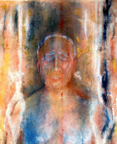 Ritratti a misura reale, con le palpebre chiuse e le mani congiunte sotto il ventre in una postura che ricorda la Sacra Sindone, i soggetti di questi lavori, su cui evidente è il lavoro intenso condotto dalla mano dell’artista, presentano i tratti del viso e del corpo trasfigurati e colti in una dimensione eterea, astratta, allo stesso tempo distaccata e appartata che solo la percezione della morte può produrre.