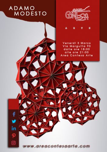 Area Contesa Arte è felice di ospitare un nuovo evento: un vernissage dell’artista scultore Adamo Modesto. Con i cartoni riciclati compone rilievi, assemblaggi, scatole-sculture, libri-oggetto, paesaggi urbani o composizioni astratte; irradianti, a nido d’ape, o labirintiche, a segmenti. Un artista poliedrico dalle mille sfaccettature! La serata sarà accompagnata da un cocktail di benvenuto e della buona musica. L’evento avrà luogo venerdì 3 marzo 2017, ore 18:00, presso Area Contesa Arte (Via Margutta, 90, Roma) ed è realizzato in collaborazione con il team di Everyday S.r.l. (Roma).