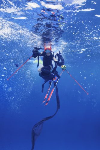 ”Immagini d’impatto – prosegue il fotografo Giuseppe La Spada – L’idea è avvicinare il suo pubblico, sportivo e anche giovane. Creando anche un cortocircuito: Federica è una sciatrice e la neve non è altro che acqua. Ma con il riscaldamento del pianeta e lo scioglimento dei ghiacciai si ritroverebbe senza neve, proprio come in queste foto, a sciare sott’acqua”.