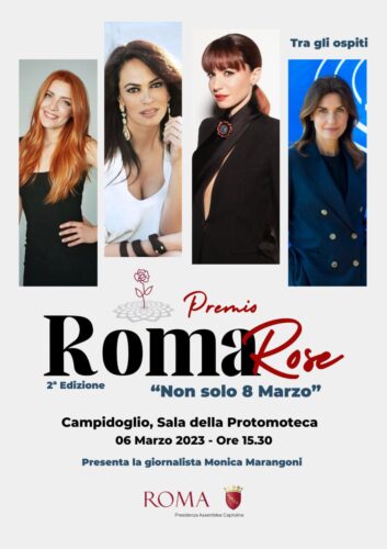 Al via la seconda edizione del premio “RomaRose – Non solo 8 marzo”, organizzato dalla presidenza dell’assemblea capitolina. L’evento, dedicato all’impegno e al talento femminile, è in programma lunedì 6 marzo alle ore 15:30 nella sala della Protomoteca in Campidoglio.