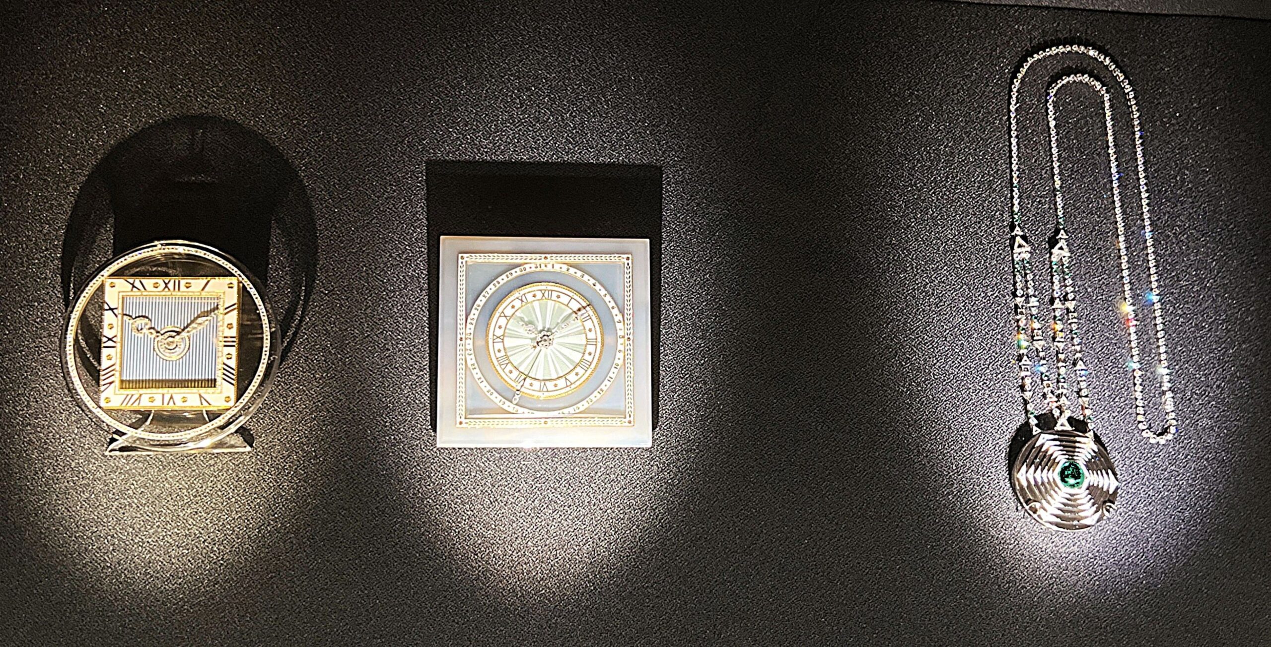 Esposti anche alcuni dei più raffinati orologi creati da Cartier nel XX secolo, che reinterpretano le antiche forme di rappresentazione del tempo, con la presenza di segni zodiacali, riprodotti fedelmente sul modello delle meridiane zodiacali romane.