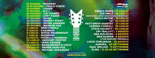 “Sarà un Roma Summer Fest dal sapore internazionale – dichiara l’ad della Fondazione Musica per Roma Daniele Pitteri – che finalmente riporta a Roma una scelta selezionatissima di artisti italiani da Paolo Conte a Elisa, band di fama mondiale come Pixies, Deep Purple, Simple Minds, Kasabian, The Smile con Thom Yorke, Jonny Greenwood & Tom Skinner, artisti straordinari come come Paolo Nutini, Ben Harper e Paul Weller, concerti in esclusiva prodotti da Musica per Roma come Moderat, Cat Power, Gregory Porter, Rufus Wainwright, Aurora. Questi concerti, assieme a quello di Patti Smith, che nel 2002 fu fra gli artisti che inaugurarono la sala Sinopoli, sono anche eventi speciali pensati per il ventennale dell’Auditorium di Renzo Piano”.