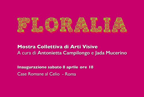 Sabato 8 aprile 2017 alle ore 18.00 si inaugura presso le Case Romane del Celio la mostra Floralia | Dialogo senza tempo, a cura di Antonietta Campilongo e Jada Mucerino, con il patrocinio del Ministero dell’Interno – Fondo Edifici di Culto, sotto l’alta sorveglianza del MiBACT Ministero dei Beni e delle Attività Culturali e del Turismo – Soprintendenza Speciale per i Beni Archeologici di Roma, in collaborazione con Spazio Libero soc. coop.soc.