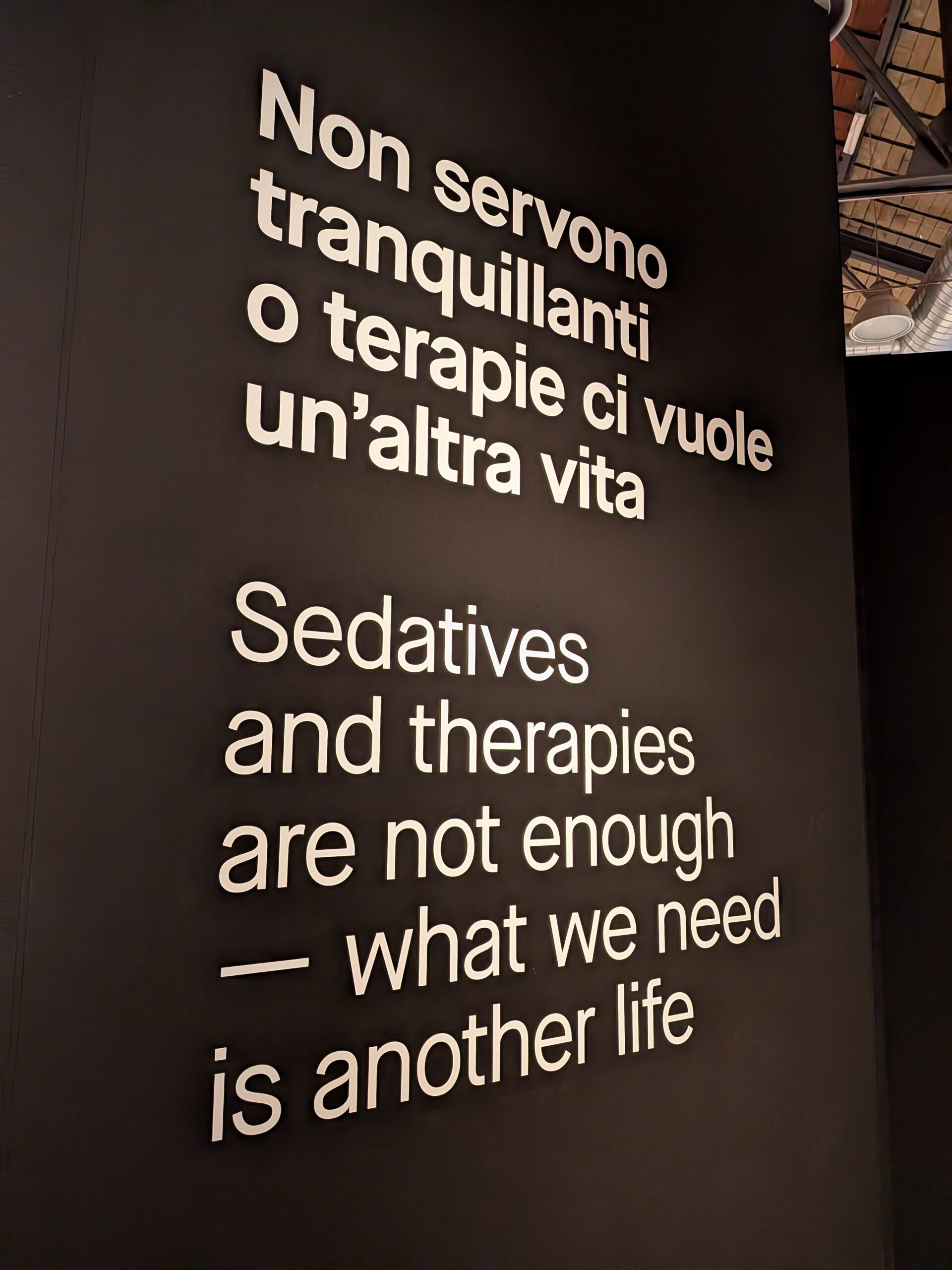 “Sulle strade la terza linea del metrò che avanza. E macchine parcheggiate in tripla fila” è uno dei passaggi del brano “Un’altra vita”, che ha dato il nome alla mostra. La canzone è del 1985 e sembra preconizzare lo scenario della mobilità nella città che ha voluto ospitare l’esposizione, con la Metro C in espansione e l’immancabile doppia o tripla fila a circondare – come mura di cinta – le strade della Capitale. Profetico, come sempre.