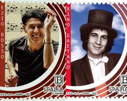 Due francobolli, validi per la posta ordinaria sono stati emessi oggi per ricordare due musicisti italiani, entrambi scomparsi prematuramente: il compositore e direttore d’orchestra Ezio Bosso e il cantautore Rino Gaetano. Inseriti nella serie periodica delle ”eccellenze dello spettacolo”, i due francobolli ne confermano l’impostazione grafica, con il ritratto del commemorato circondata da un disegno che ricorda i vecchi dischi in vinile.