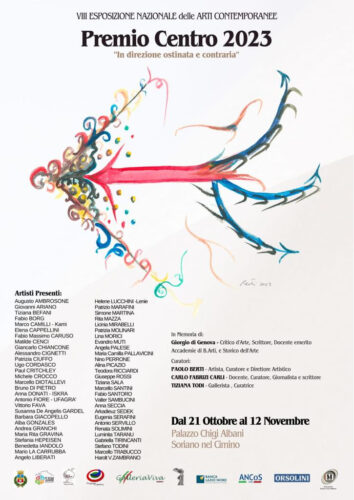 Nello splendido contesto di Soriano nel Cimino, un “Premio” 2023 già da tempo programmato dall’artista Paolo Berti insieme all’indimenticato Giorgio Di Genova (che ci spiace dover citare al passato poiché il 25 luglio di quest’anno ci ha lasciato). Un evento che aveva già un titolo ed un messaggio, nonché le adesioni di un gruppo consistente di artisti. Dunque all’insegna del titolo – “In direzione ostinata e contraria” – dal 21 ottobre al 12 dicembre 2023 si potrà visitare questa interessante esposizione nelle sale del Palazzo Chigi Albani – (INGRESSO LIBERO)