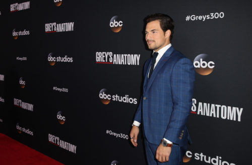 Giacomo Gianniotti in posa all'evento per la puntata numero 300 di Grey's Anatomy. L'attore ha parlato con la stampa italiana © (ABC/Paul Hebert)