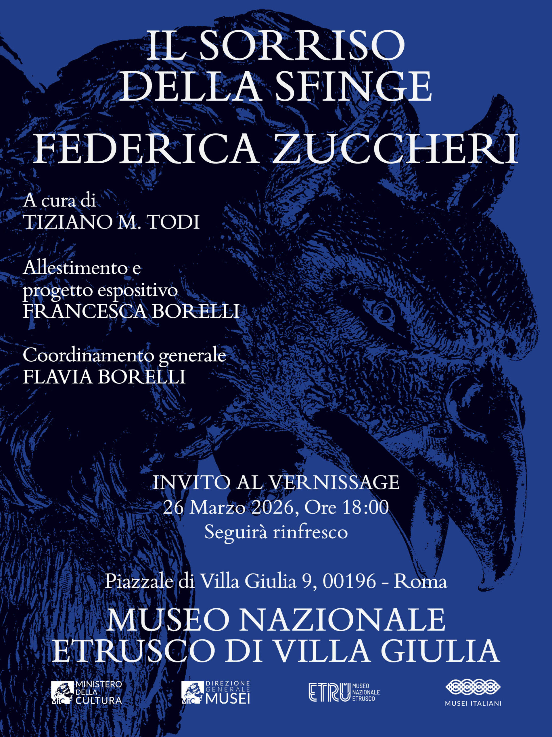 Il Museo Nazionale Etrusco di Villa Giulia e Galleria Vittoria di Roma presentano “Il sorriso della Sfinge”, la mostra personale della scultrice contemporanea Federica Zuccheri, aperta al pubblico dal 27 marzo al 3 maggio 2026. L’inaugurazione si terrà giovedì 26 marzo, su invito, dalle 18.00 alle 19.30.