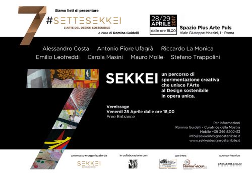 Dal 27 al 29 aprile, presso la galleria PLUS ARTE PULS sita in Viale Giuseppe Mazzini 1, le creazioni di Sette artisti sono in mostra con l’esposizione #SETTESEKKEI, organizzata dalla start up Sekkei, l’arte del design sostenibile e curata da Romina Guidelli.