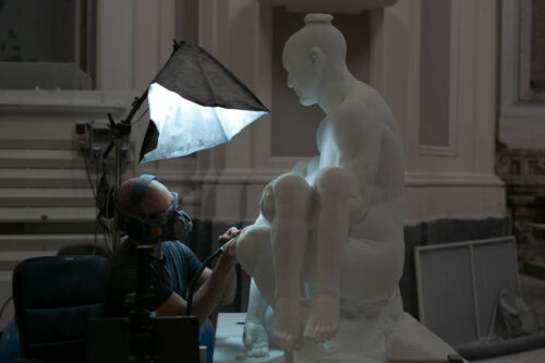 Conosciuto già per il busto-ritratto di Papa Benedetto XVI presentato alla 54° Biennale di Venezia (2009), poi spogliato dei suoi paramenti nell’incredibile rielaborazione dell’opera “Habemus Hominem” (2018), fino all’opera “The First Baby” inviata sulla Stazione Spaziale Internazionale in occasione della missione Beyond dell’ESA (2019-2020), prima opera d’arte nello spazio, o la scioccante istallazione “Look Down”, il bimbo in catene, posizionato nella notte del 5 novembre 2020 in Piazza Plebiscito.