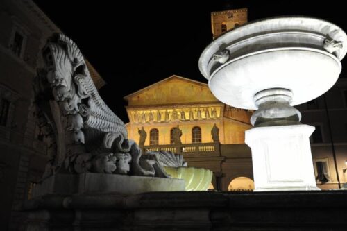 Dopo il Borgo di Ostia Antica e la rinnovata illuminazione che avvolge il Castello di Giulio II, questo piano prosegue con la Basilica di Santa Maria in Trastevere i cui splendidi affreschi e mosaici, di recente restaurati, si vestiranno di una luce completamente nuova. E’ stato realizzato, infatti, un sistema che contempla attenzione al valore storico dei luoghi e degli edifici con le più moderne tecnologie, per far convivere innovazione e storia nel cuore di Trastevere”.