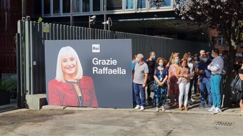 In una Roma infuocata per il caldo, il corteo a via Teulada, lo studio degli esordi, del bianco e nero, lo studio di ‘Pronto Raffaella’ si è fermato davanti ad una gigantografia dell’artista all’esterno degli studi Rai. Anche qui una piccola folla ha accolto il feretro della Carrà all’esterno mentre, nel cortile interno del centro di Produzione, dove è entrata l’auto, le note delle sue canzoni hanno fatto da accompagnamento agli applausi di quanti si sono affacciati da balconi e terrazzi.