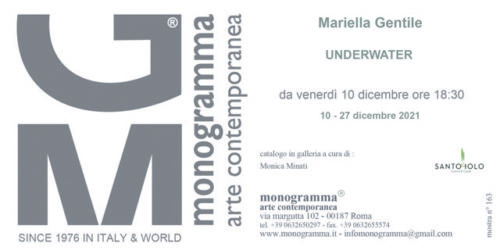 La galleria Monogramma presenta “Underwater 1” – 2021: la personale di Mariella Gentile che inaugura venerdì 10 dicembre alle ore 18:30 negli spazi di via Margutta 102.
