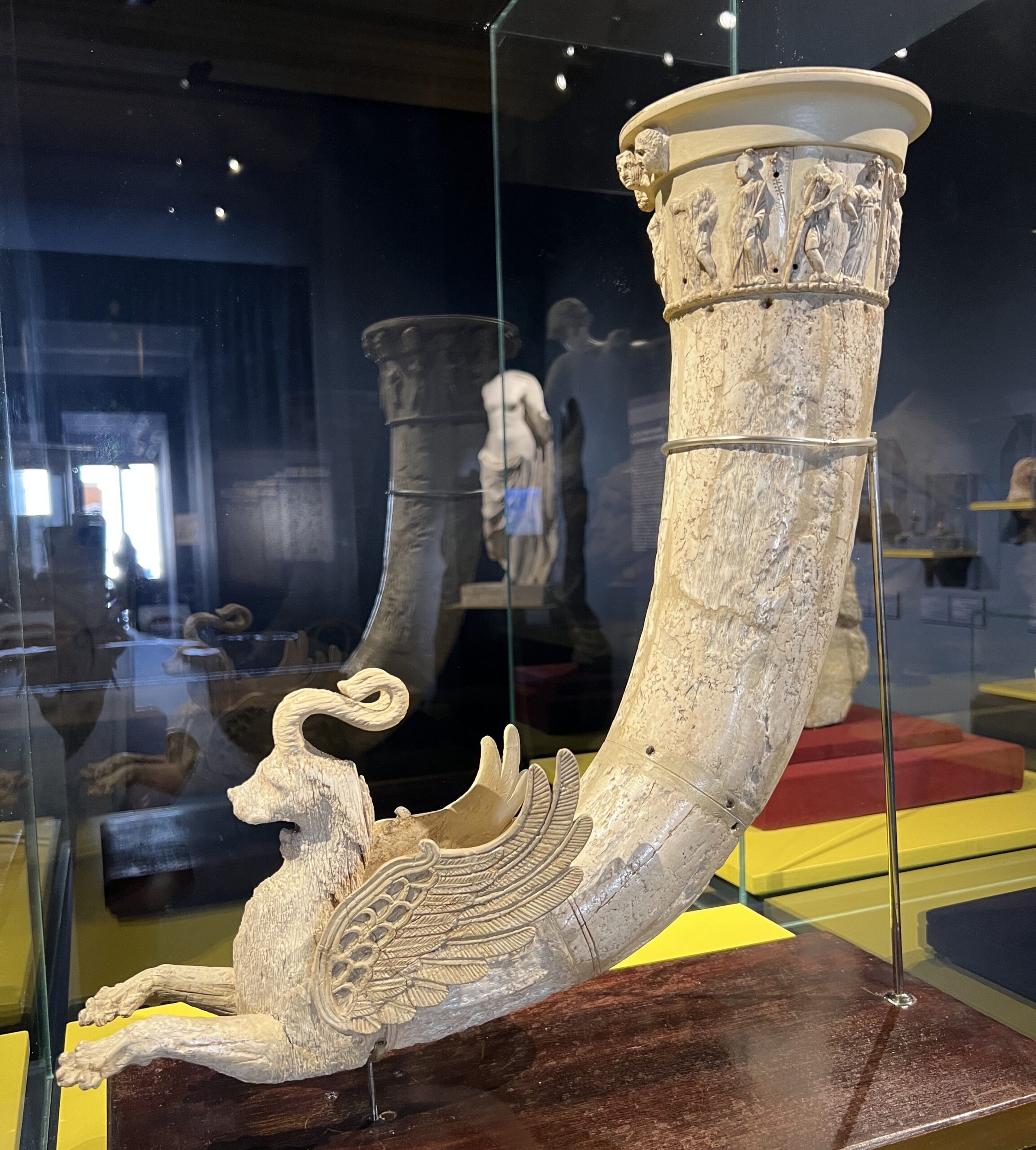 La seconda parte dell’esposizione presenta capolavori provenienti da Nisa-Mithradatkert, un complesso monumentale e santuario dedicato alla dinastia dei Parti che creò un vasto impero esteso dall’Eufrate alla Battriana, poi rivale di Roma. Eccezionalmente, per la prima volta fuori dal Turkmenistan, sono qui esposti i rhyta (corni per versare liquidi) veri e propri capolavori dell’arte dell’intaglio su avorio che costituiscono un ritrovamento unico per la produzione artistica del periodo e indicano le intense relazioni con il mondo ellenistico e iranico.