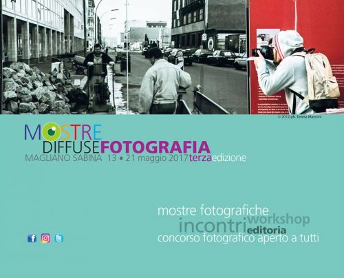 Teresa Mancini e Riccardo Cattani di Bycam, gli organizzatori, hanno ancora una volta scelto come luogo della kermesse Magliano Sabina, in provincia di Rieti, che dal 13 al 21 maggio 2017, ospiterà oltre 15 mostre fotografiche distribuite per la città, incontri con gli autori, workshop, presentazione di libri fotografici. Saranno coinvolti non solo professionisti e appassionati della fotografia, ma anche popolazione e turisti di passaggio in una riflessione su come recuperare il territorio per il futuro. È un progetto che divulga l’interesse per la fotografia, come parte integrante di cultura, arte e costume e, al tempo stesso, crea esposizioni fotografiche temporanee nei locali dismessi del centro storico di Magliano Sabina. L’intento è quello di ridare vita alla città attraverso l’utilizzo dei locali, una volta fiorenti negozi e attività commerciali o artigianali, coinvolgendo la popolazione e attivando un flusso turistico positivo per il territorio.