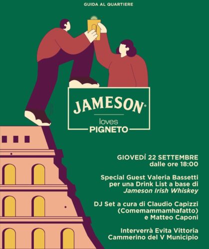 Il libro “Jameson loves Pigneto”, nato dalla collaborazione con Jameson Irish Whiskey, sarà distribuito nel quartiere a partire da giovedì. Uno strumento di omaggio e valorizzazione del territorio romano che si inserisce nella più ampia cornice del Pigneto Film Festival, la rassegna culturale diffusa in corso in diversi punti del quartiere.