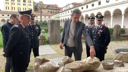 Preziosi reperti d’epoca imperiale sono stati consegnati dai carabinieri al Museo nazionale romano alle Terme di Diocleziano. Il ritrovamento è avvenuto nel 2021 a Castel Gandolfo, in via dei Pescatori, durante lo sgombero di un’appartamento: i reperti ritrovati furono catalogati e sequestrati. Dopo la confisca, il tribunale di Velletri ha disposto l’assegnazione dei reperti al Museo nazionale romano per la presa in carico e la custodia.