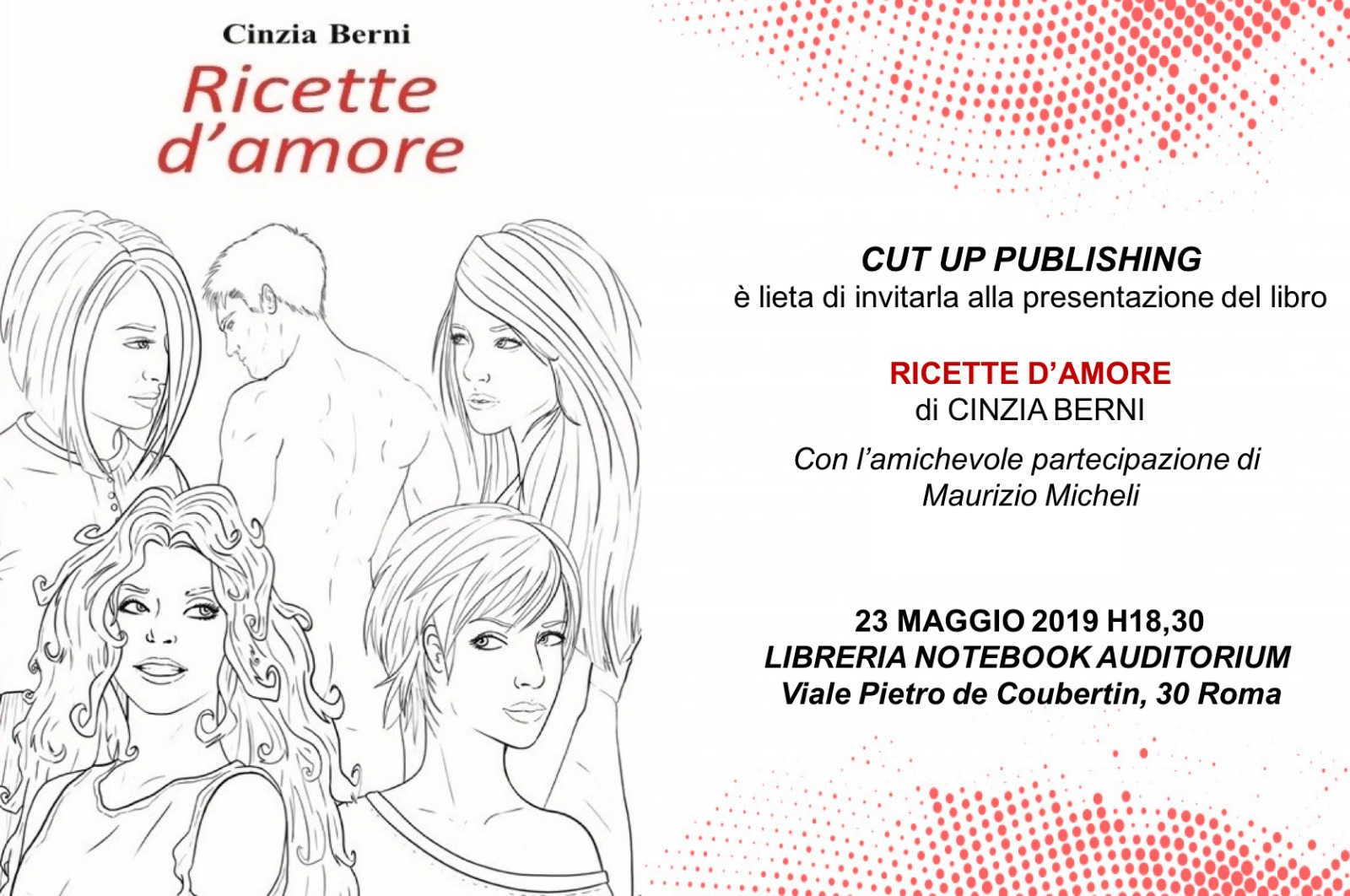 “Ricette d’amore” di Cinzia Berni presentazione 23 maggio ore 18,30 presso la libreria Notebook Auditorium, v.le P. de Coubertin 30
