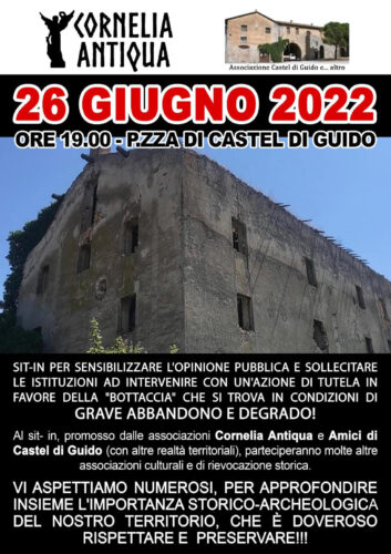 Le Associazioni:Cornelia Antiqua e Amici di Castel di Guido, con i rispettivi presidenti Cristian Nicoletta e Fabio Scaccia rinnoveranno l’appello per il salvataggio ed il restauro dell’Antichissimo Casale della Bottaccia.