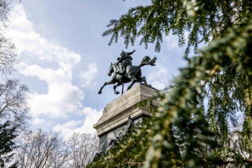 La statua equestre di bronzo è alta 4 metri e mezzo e pesa 40 quintali