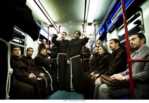 La banda dei ricercatori è tornata, eccola in un travestimento sulla metro B. Smetto quando voglio - Ad Honorem vi aspetta il 30 novembre al cinema © Emanuele Scarpa