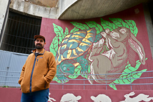 Il primo dipinto realizzato rappresenta una scena della favola “La lepre e la tartaruga”, una scelta non casuale spiega la curatrice del progetto Elena Paloscia. «Oltre a evidenziare l’insegnamento della favola di Esopo – rileva – la scelta di mettere in scena il momento in cui la lepre dorme delinea anche una lettura tra le righe. La lepre dormiente rappresenta in un certo senso anche il disinteresse di coloro che si possono crogiolare del loro agio rispetto alle visibili difficoltà attorno a loro, non curanti dei disagi del quartiere».