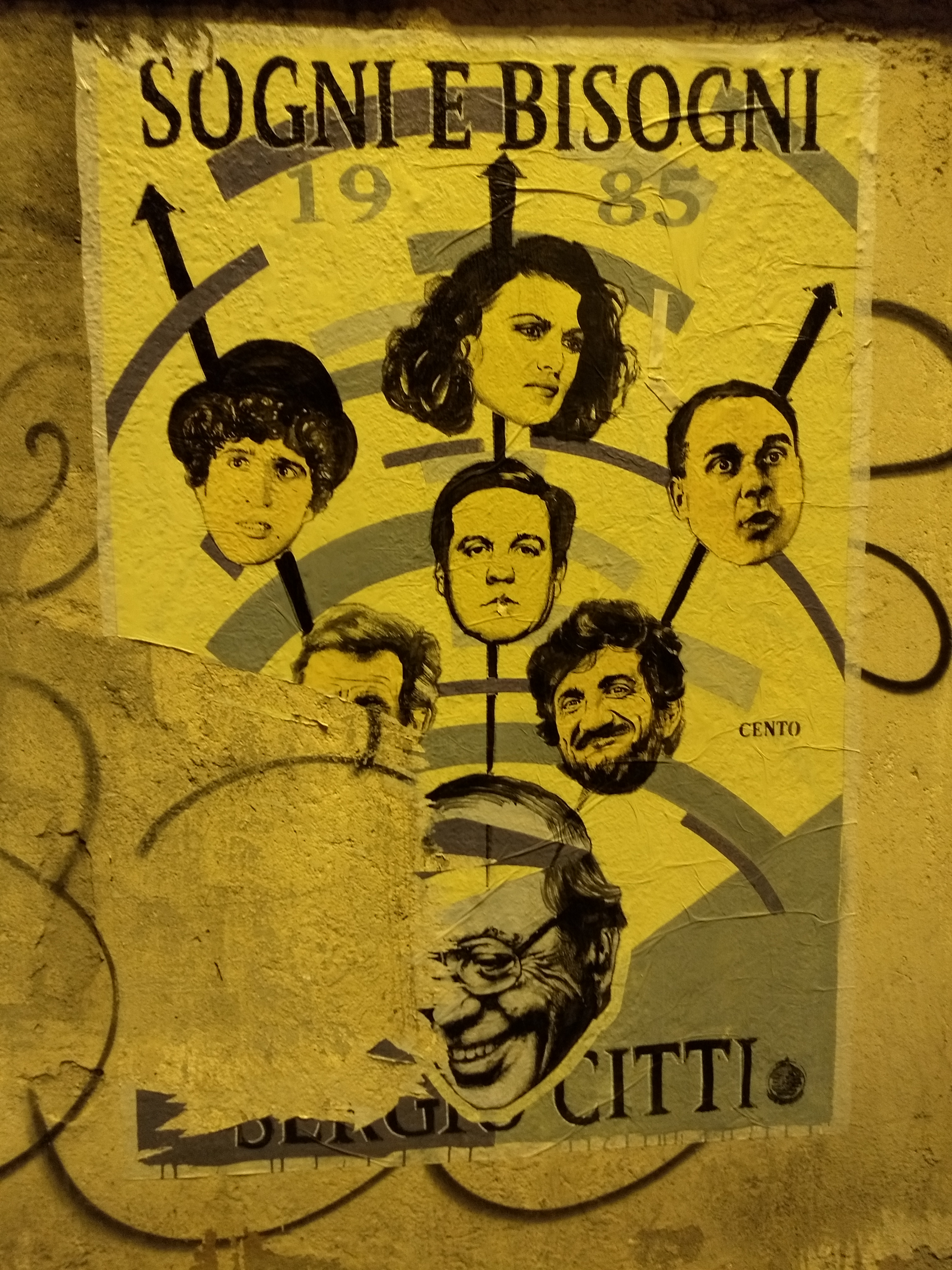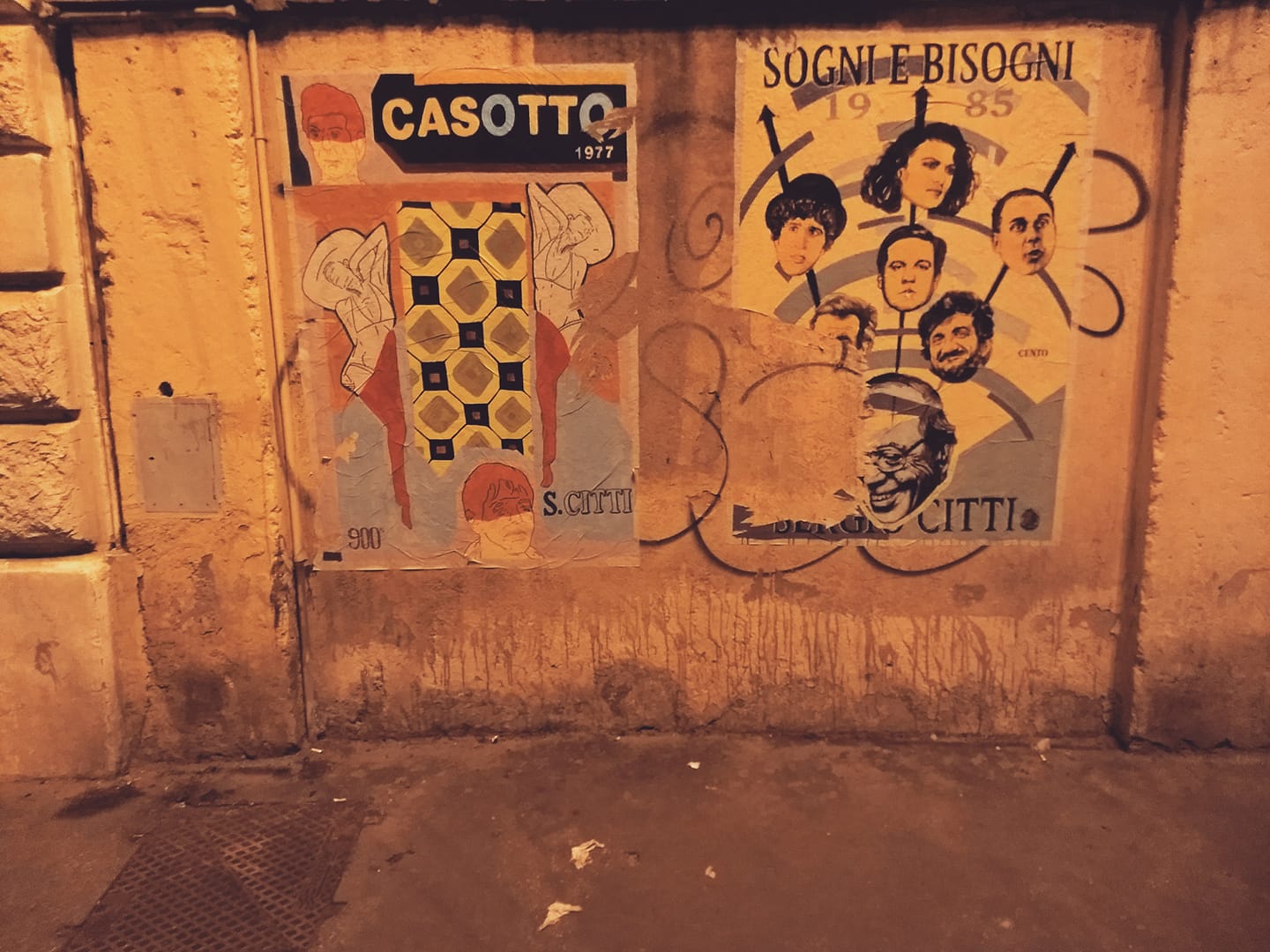 La scena è grottesca e onirica, come se a girarla fosse stato proprio il collaboratore di Pier Paolo Pasolini. Una sera di luglio del 2018 cammini per viale Trastevere e ti imbatti nei manifesti di due film di Sergio Citti accanto agli ex-voto, altezza Ministero della Pubblica istruzione. Casotto e Sogni e Bisogni, un film del 1977 e una miniserie del 1985.