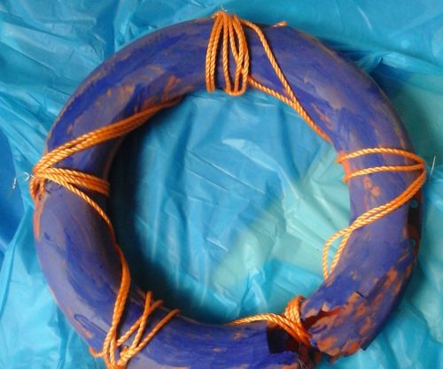 Visitabili dal pubblico per un’intera settimana, le installazioni misurano tre metri per tre. E se – da lontano – sembrano replicare pedissequamente la consueta bandiera UE, da vicino al contrario svelano tutt’altro. Infatti solo con uno sguardo prossimo a ciascuna delle tre installazioni – in una messa a fuoco sempre più concreta – le bandiere si rivelano per quello di cui sono effettivamente composte: una distesa di scarpe blu sulle quali riposano, in collocazione circolare, dodici copertoni avvolti da ingombranti catene; un mare di impermeabili trasparenti e celesti sui quali si adagiano dodici salvagenti avvolti da strisce dorate; dodici corone di fiori violacei poste su altrettante coperte blu, come in un giaciglio mortuario. A richiamare una realtà in larga parte da perfezionare, un viaggio non ancora risolto, una fatica segnata, anche e forse soprattutto, da cicatrici e lacerazioni. Ma anche a dimostrare per l’ennesima volta che, come ha scritto in un’altra occasione Achille Bonito Oliva, “le opere di Corrado Veneziano massaggiano il muscolo atrofizzato della memoria collettiva”.