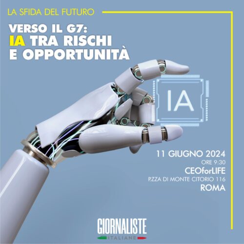 L’11 giugno, Roma sarà il palcoscenico di un importante convegno intitolato “Verso il G7: IA rischi e opportunità”. L’evento, organizzato dall’associazione Giornaliste Italiane, si terrà in piazza Montecitorio nello spazio di CeoForLife a partire dalle 9.30. Questo appuntamento si propone di esaminare in profondità i temi legati all’Intelligenza Artificiale (IA) con la partecipazione di esponenti del Governo, esperti del settore e giornalisti, in preparazione del G7 che si svolgerà in Puglia dal 13 al 15 giugno a Borgo Egnazia.