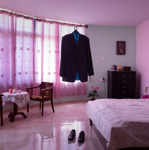 Le visite coniugali e ogni contatto fisico sono negati, ad eccezione dei bambini di età inferiore ai dieci anni, ai quali sono concessi dieci minuti alla fine di ogni visita per abbracciare i loro padri. Ecco allora l’immagine della camera da letto con i vestiti del marito, pronti e stirati, in attesa del suo rientro un giorno lontano o le donne sempre sole con foto ricordo, poltrone vuote, in un’atmosfera di sospensione di fronte alla vita, che però non si può fermare.