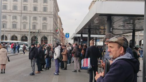 L'attesa di un autobus in servizio alla stazione Termini