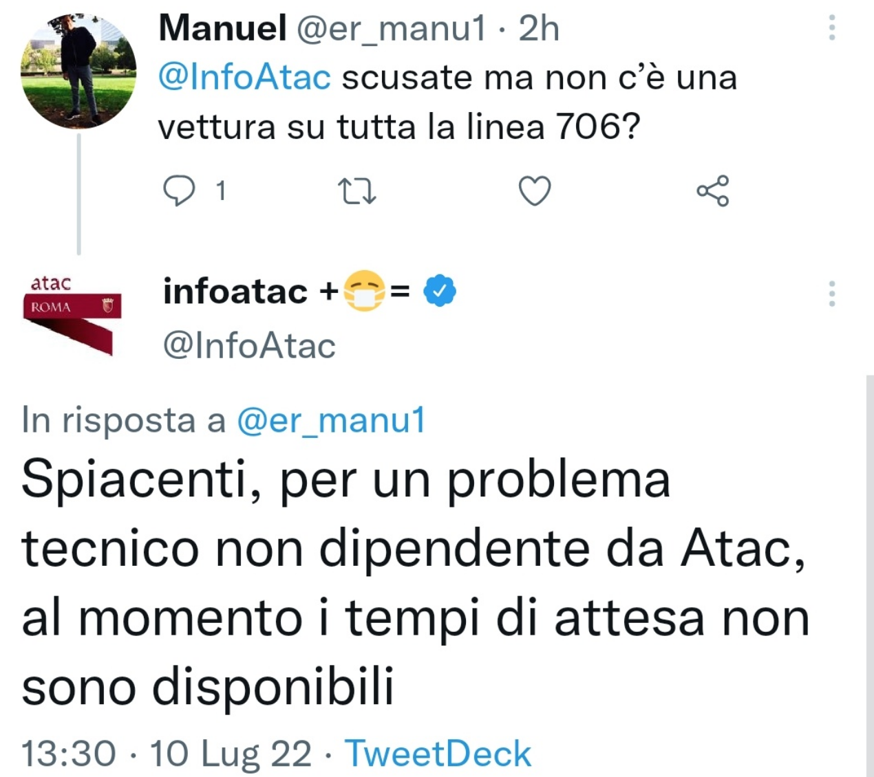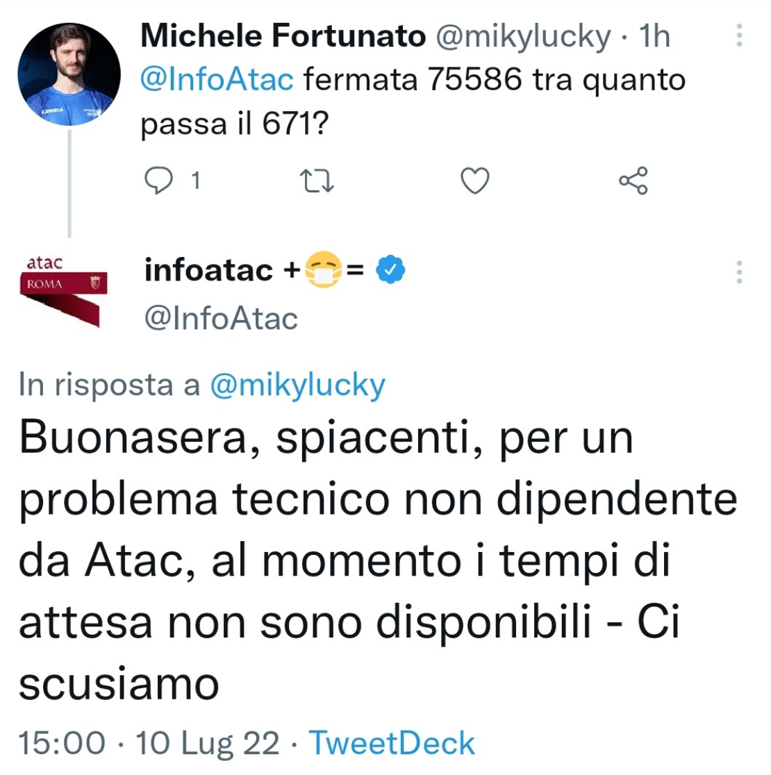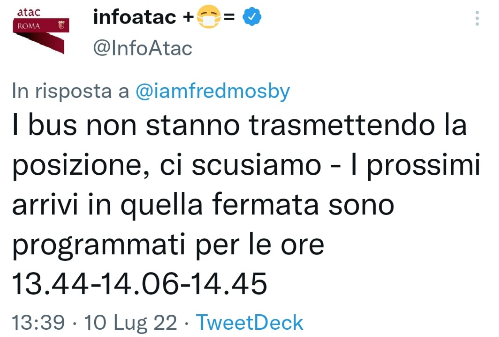 Il blogger sottolinea come il problema non riguarderebbe solo la municipalizzata ma anche Roma TPL e altri priva in subaffido, i cui bus avrebbero problematiche legate al monitoraggio.