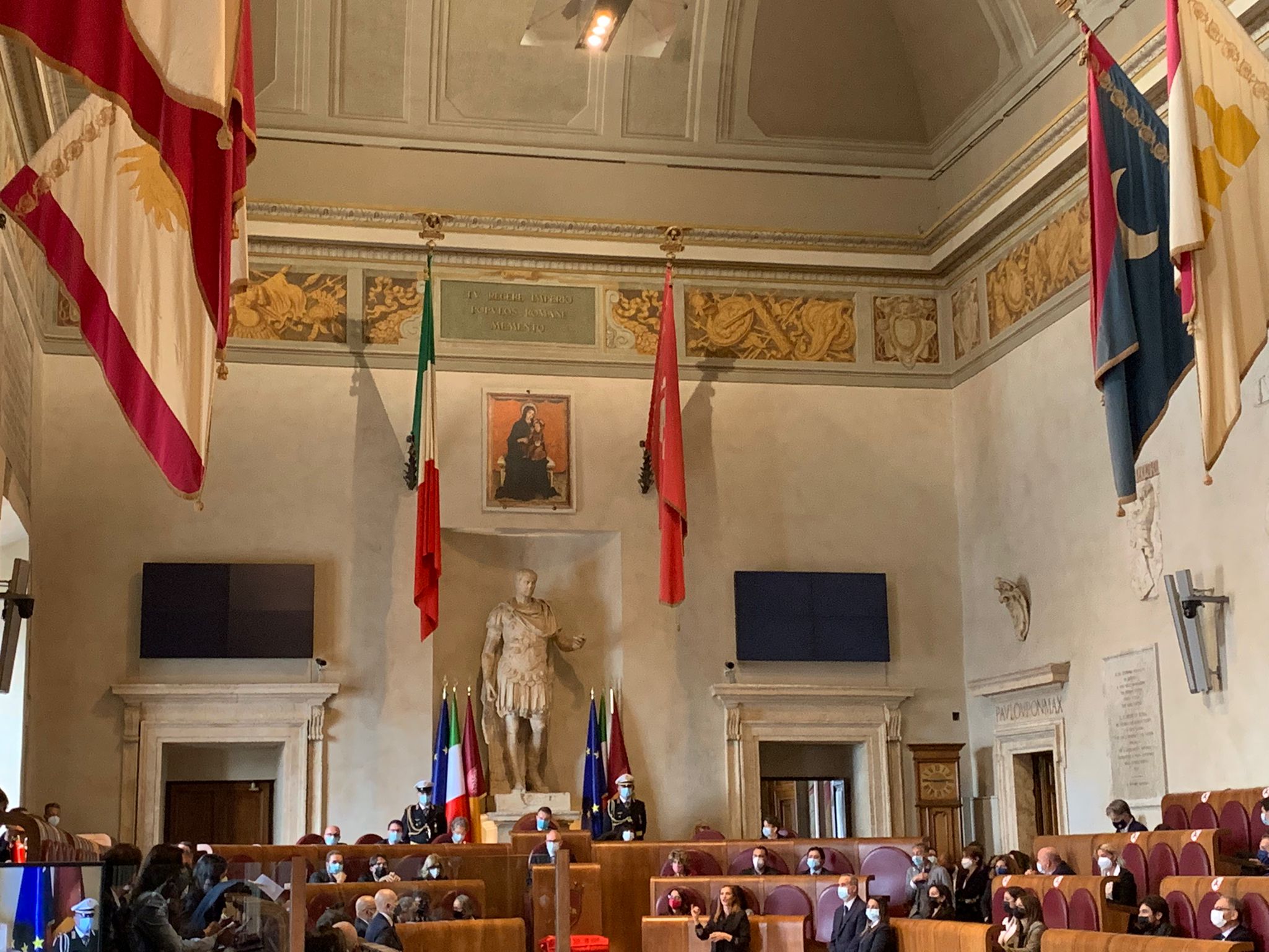 In Aula oltre al primo cittadino, fra gli altri, anche Virginia Raggi e Carlo Calenda. In totale sono presenti 46 consiglieri su 48.Presiede il consigliere ‘anziano’ Valerio Casini.