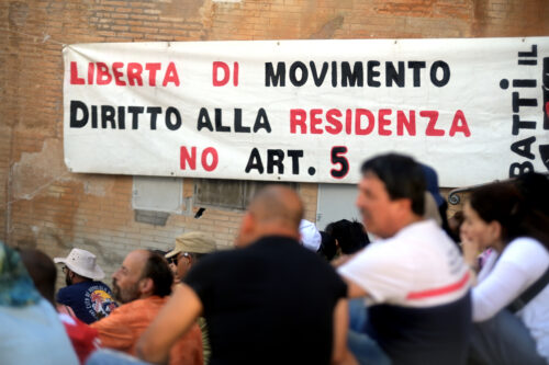 Sui cartelli, esposti dai manifestanti, si leggono parole quali: residenza, rinnovo documenti, scuola, sanità, allaccio utenze. “Mentre l’Assemblea capitolina interviene come può continuiamo a chiedere l’abrogazione di questa legge assurda, e continueremo finché non sarà cancellata”, ha detto un manifestante al megafono. Tra cori, musica e bandiere rosse con la scritta “Stop sfratti e sgomberi” la manifestazione a sostegno dell’atto prosegue.