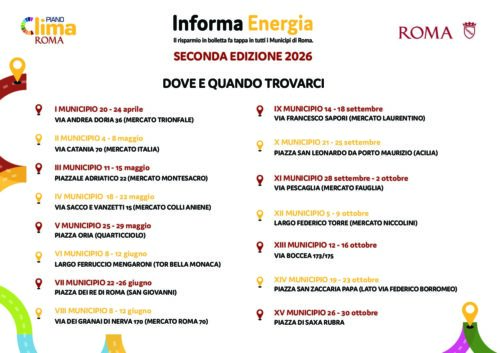 Roma rilancia il progetto “Informa Energia”, lo sportello itinerante pensato per accompagnare cittadini e famiglie nella gestione dei consumi domestici. L’iniziativa di Roma Capitale riparte il 20 aprile e proseguirà fino al 30 ottobre, attraversando tutti i Municipi con un camper attrezzato che fungerà da punto informativo mobile.