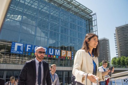 Il sindaco di Roma Virginia Raggi ha inaugurato, tagliando il nastro, l’edizione 2017 del Forum della Pa.