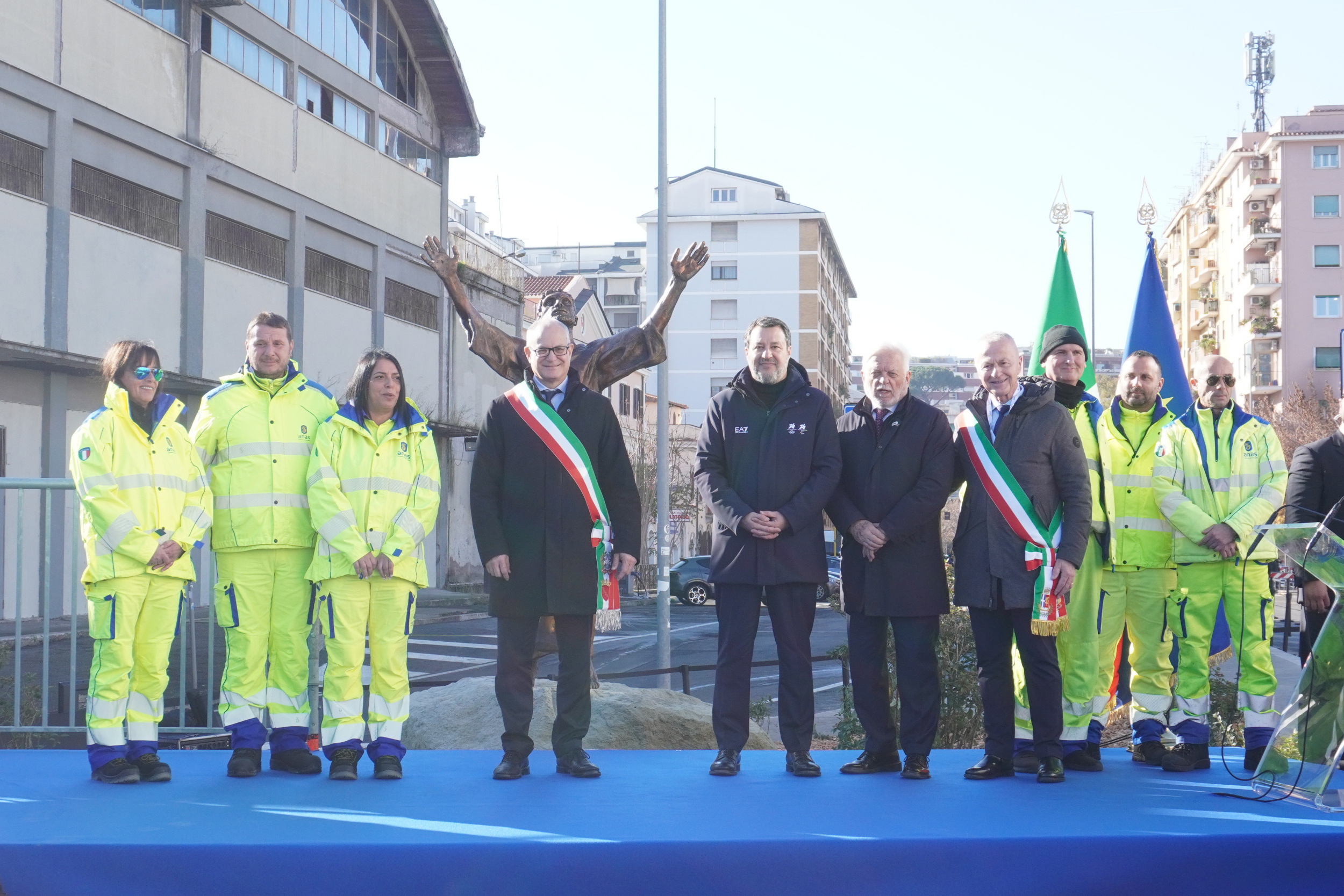 “La realizzazione di questo ponte, e di fronte la statua di San Francesco, è un simbolo di straordinaria grandezza che si colloca alla fine del Giubileo”, ha spiegato il cardinale Baldassarre Reina. “Ci stiamo impegnando perché rimangano dei segni di San Francesco – ha spiegato il presidente del comitato nazionale per la celebrazione dell’ottavo centenario della morte di San Francesco d’Assisi, Davide Rondoni -. L’industria nasce dove si ama la realtà, e San Francesco ha portato questo modo di amare la realtà che è un amore che non possiede. Stiamo preparando una decina di statue nuove di grandi artisti italiani che verranno posti in tanti luoghi simbolici del Paese, e questa è la prima”, ha concluso Rondoni. “Il completamento delle operazioni di restauro e riposizionamento degli arconi rappresenta un passaggio fondamentale nel recupero del Ponte dell’Industria – ha affermato l’amministratore delegato di Anas, Claudio Andrea Gemme -. Anas ha lavorato con la massima attenzione tecnico-scientifica per restituire alla città un’opera storica valorizzata e pienamente integrata con gli standard di sicurezza e funzionalità richiesti oggi. L’intitolazione a San Francesco d’Assisi aggiunge un significativo valore simbolico a un’infrastruttura che torna a essere pienamente fruibile per cittadini e pellegrini. Proseguiremo il nostro impegno, in collaborazione con le Istituzioni, per completare nei tempi previsti gli interventi del Giubileo, contribuendo a migliorare la mobilità e la qualità dello spazio urbano di Roma”, ha concluso Gemme.