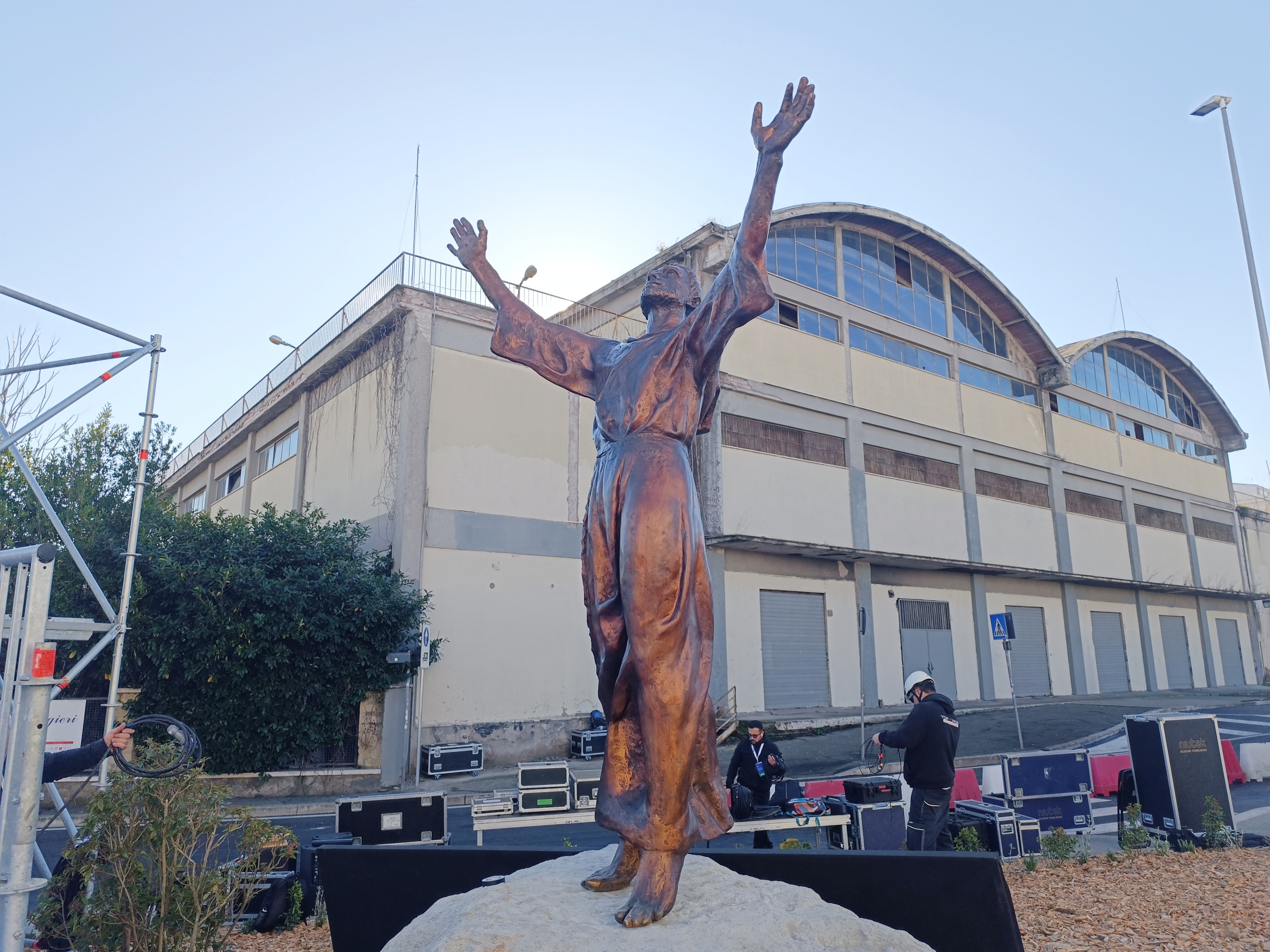 Contestualmente alla collocazione della statua si è concluso anche il restauro degli arconi storici del ponte, risalenti ai primi del ‘900. Gli elementi, completamente recuperati e riportati al loro aspetto originario attraverso un meticoloso intervento di conservazione, sono stati nuovamente posizionati sulla struttura. Le unioni chiodate originali sono state preservate, mentre ogni componente danneggiata è stata ricomposta secondo criteri di tutela e autenticità. Il colore attuale degli arconi è stato definito grazie a saggi stratigrafici eseguiti durante le attività di restauro. L’opera, insieme a un nuovo impianto di illuminazione, a un riassetto delle aree verdi e a una rotatoria adiacente, contribuirà a valorizzare il ponte non solo come infrastruttura, ma come luogo simbolico di memoria e spiritualità.