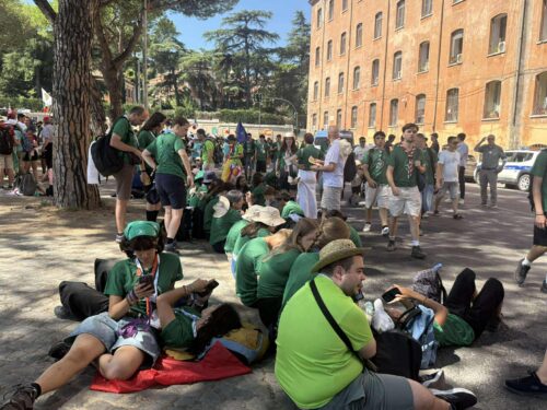 Alcuni pellegrini al Circo Massimo di Roma in occasione della giornata penitenziale del Giubileo dei giovani.
