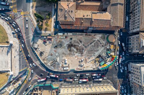 Il cantiere della stazione Venezia della Metro C che ha portato alla luce i primi reperti di età romana.