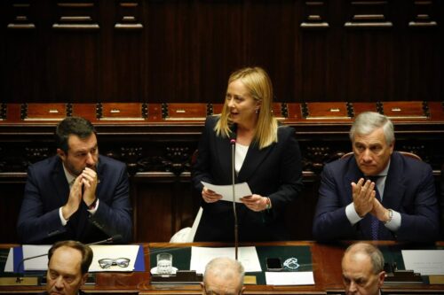Nelle dichiarazioni programmatiche Meloni ha sottolineato, fra i pesi maggiori “che sento gravare oggi c’è anche quello di essere la prima donna a capo del governo di questa nazione”, ha detto. “Penso alla responsabilità che ho nei confronti di tutte quelle donne che affrontano difficolta e ingiustizia per affermare il proprio talento ed apprezzati i loro sacrifici”, ha aggiunto citando alcune delle donne che hanno lasciato il segno nella storia del nostro Paese, per le più diverse ragioni. Personalità a cui il presidente Meloni ha voluto dire “grazie per aver dimostrato il valore delle donne italiane come spero di riuscire a fare anche io”. “Oggi interrompiamo una grande anomalia italiana dando vita a un governo politico fortemente rappresentativo della volontà popolare”, ha aggiunto Meloni, sottolineando che “vogliamo liberare le migliori energie e garantire a tutti gli italiani un futuro di maggiore libertà, giustizia, benessere e sicurezza. E se per farlo dovremo scontentare alcuni potentati o fare scelte non comprese all’inizio lo faremo perché il coraggio non ci difetta”.
